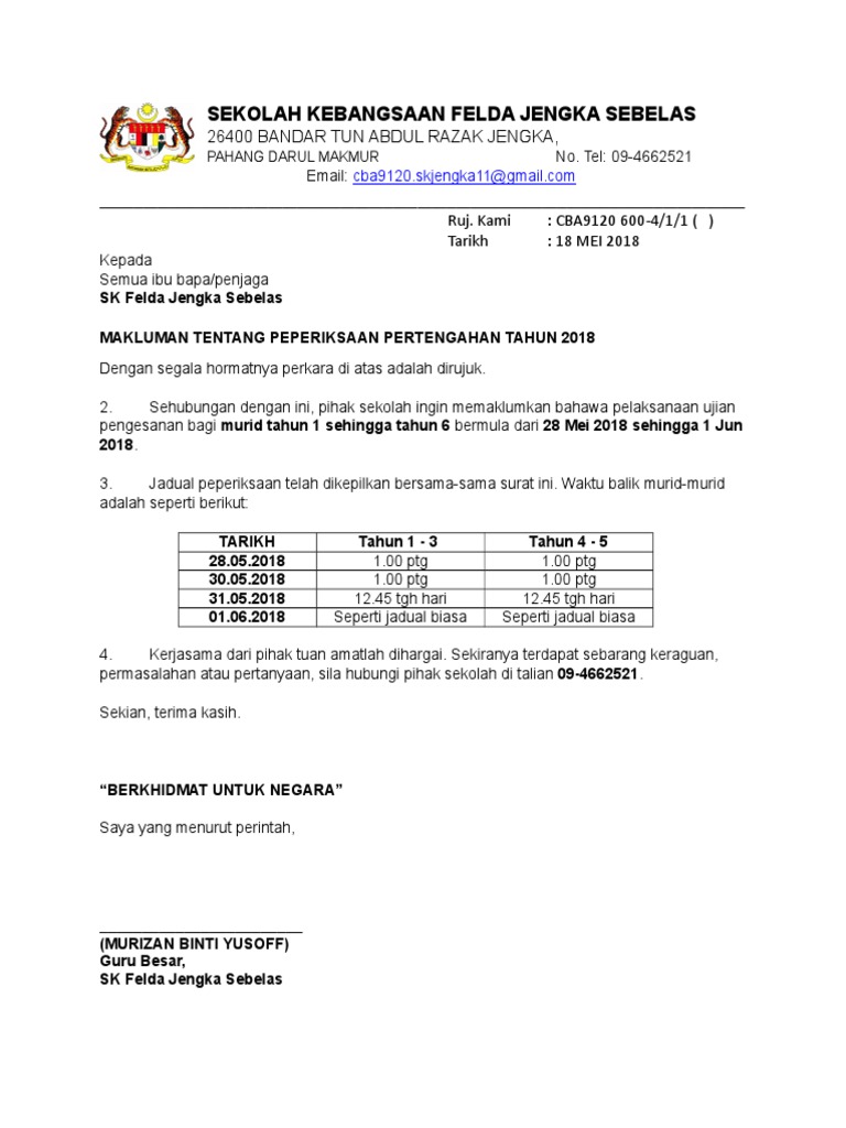 Surat Pemakluman Peperiksaan Smk Tun Abang Haji Openg Facebook Semak cara menulis nota dan format ayat dengan mengikut contoh surat rayuan mrsm hantar ke Bahagian Pendidikan Menengah Mara bagi. Klik TERUSKANKlik SEMAK STATUS PERMOHONANPilih Kod Nombor Telefon Bimbit yang tersenarai. Contoh surat makluman kelas tambahan download kumpulan.